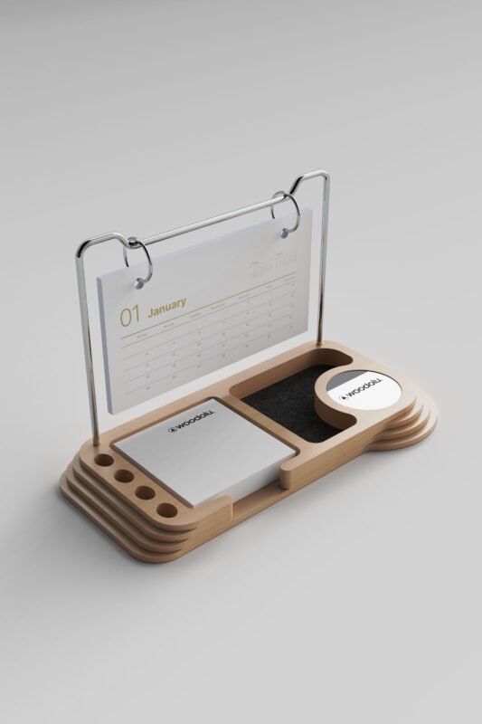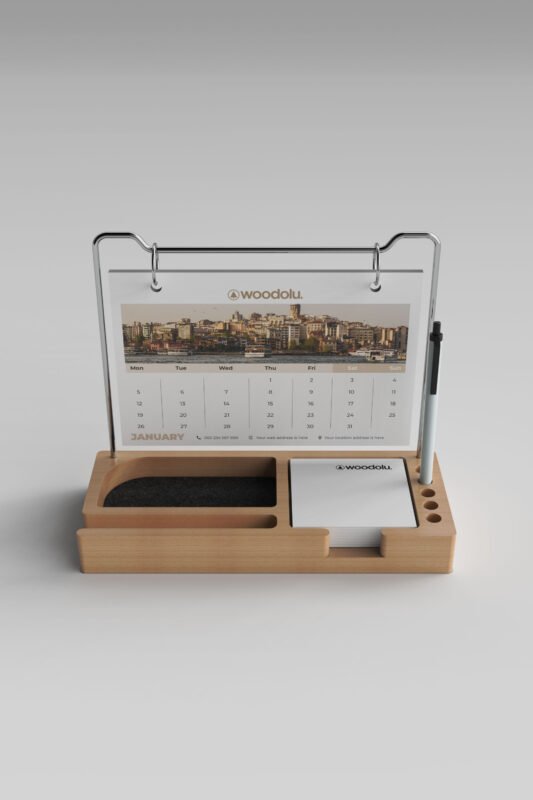 Doğal ahşabın sıcaklığını modern tasarımla buluşturan, şık ve işlevsel masa takvimleri.