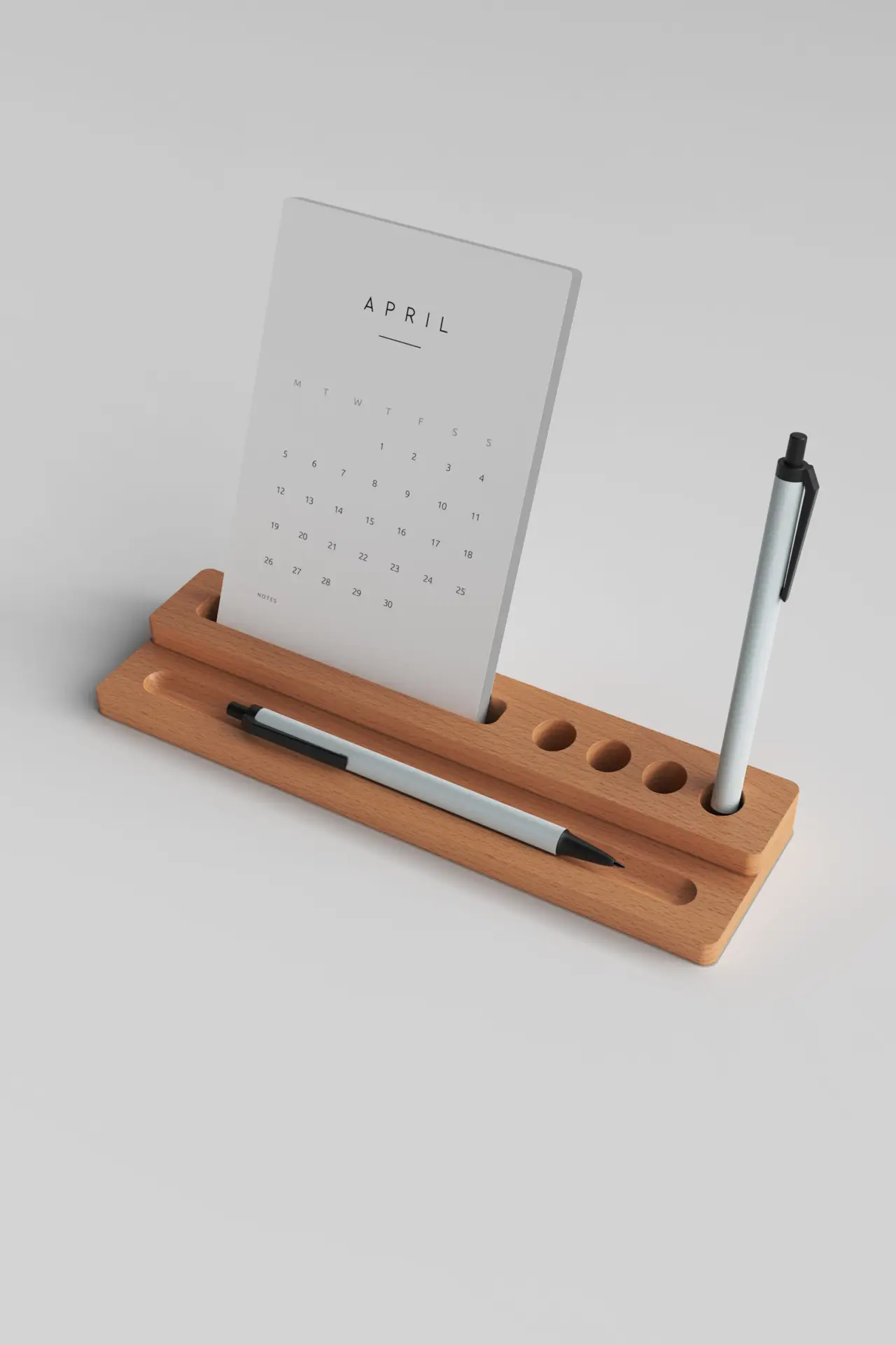 Bu masa takvimi yalnızca zaman yönetimine yardımcı olmakla kalmaz, aynı zamanda işinizi kolaylaştıracak organize bölmelere sahiptir. Ahşap üzerinde 4 adet kalem yuvası ve bir adet yan kalem yuvası bulunmaktadır. Kalemlerinizi düzenli bir şekilde saklayarak her zaman elinizin altında olmalarını sağlar. Takvim yuvası ise yaprakları sabit tutarak kolay kullanım sunar.